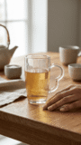 This clear glass beer mug features a classic tall design with a comfortable handle and decorative vertical ribbed texture pattern. Ideal for serving cold beverages like beer, juice, or any drink of choice. The transparent construction allows you to showcase your favorite beverage while the sturdy glass ensures durability for everyday use.