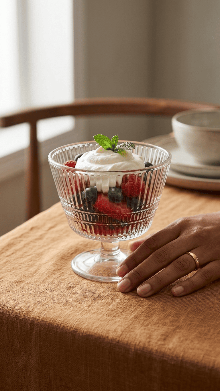 This elegant clear glass pedestal bowl features a classic footed design with a textured ribbed pattern on the exterior. Ideal for serving desserts, fruits, or using as a decorative centerpiece, it brings a touch of sophistication to any dining table or home d?cor.