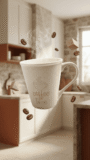 This elegant cream-colored ceramic mug features a charming embossed design with ‘Coffee Time’ text in warm gold lettering. The cup showcases a delicate illustration of a coffee cup with hearts, making it perfect for coffee enthusiasts. With its comfortable handle and quality ceramic construction, this mug is ideal for enjoying your favorite hot beverages in style.