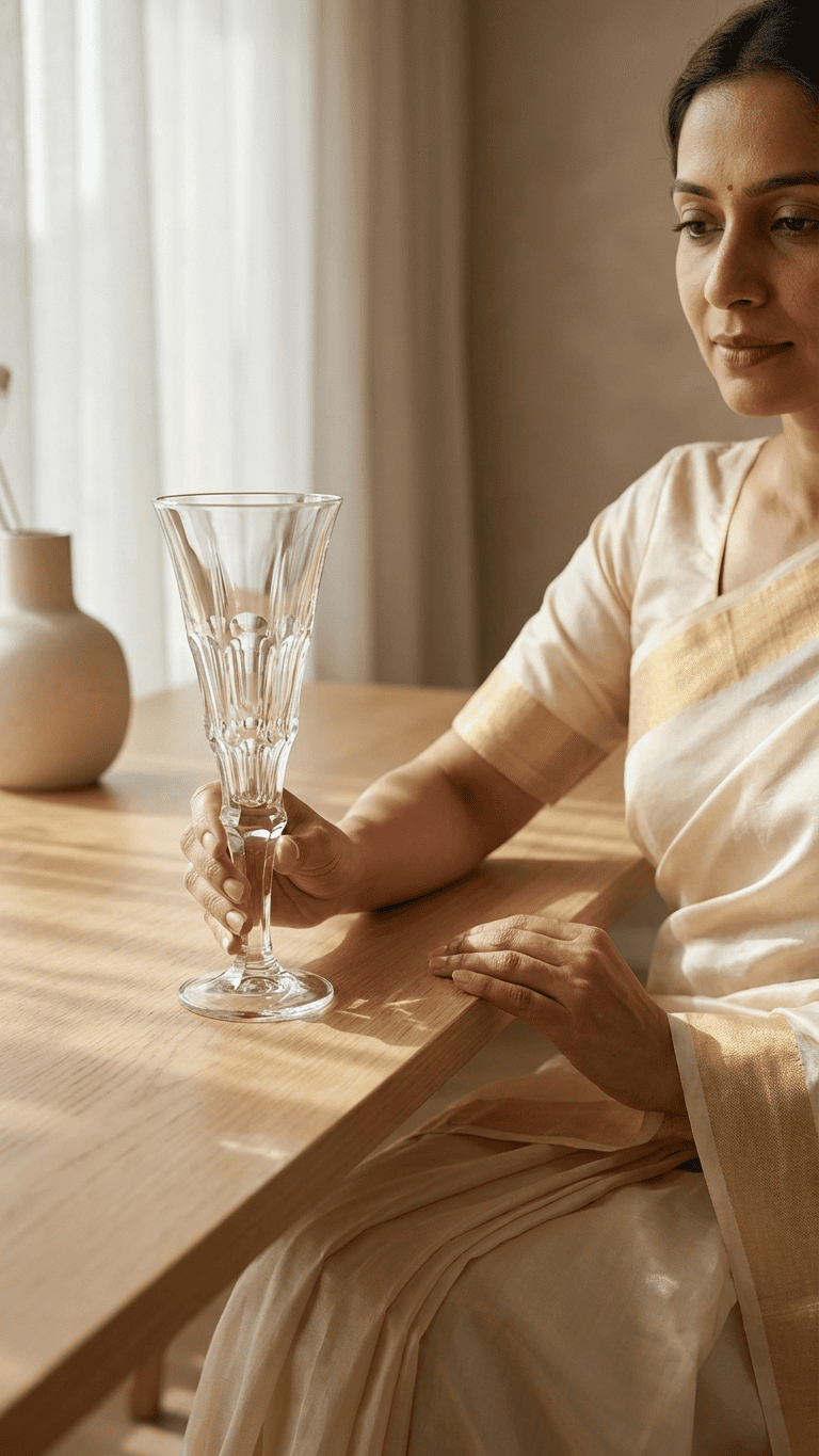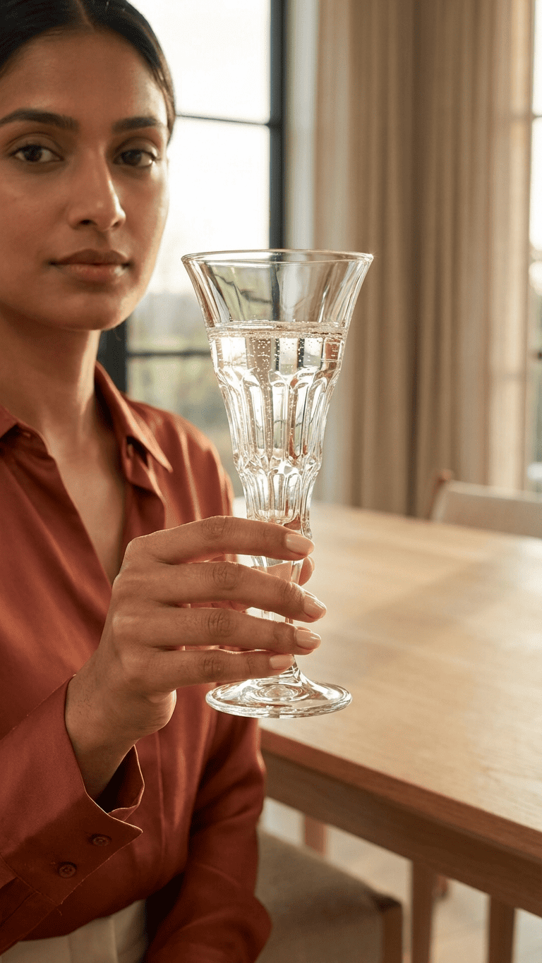 This elegant champagne flute features intricate crystal cut patterns that catch and reflect light beautifully. The tall, slender design with a sturdy weighted base makes it ideal for serving champagne, sparkling wines, and special occasion beverages. Crafted from premium lead-free crystal glass, it combines sophistication with durability.