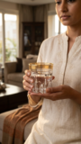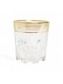 This sophisticated crystal glass tumbler features a clear design with an elegant gold rim and intricate cut patterns on the lower portion. The refined craftsmanship makes it ideal for serving beverages while adding a touch of elegance to your dining experience. Perfect for everyday use or special occasions.