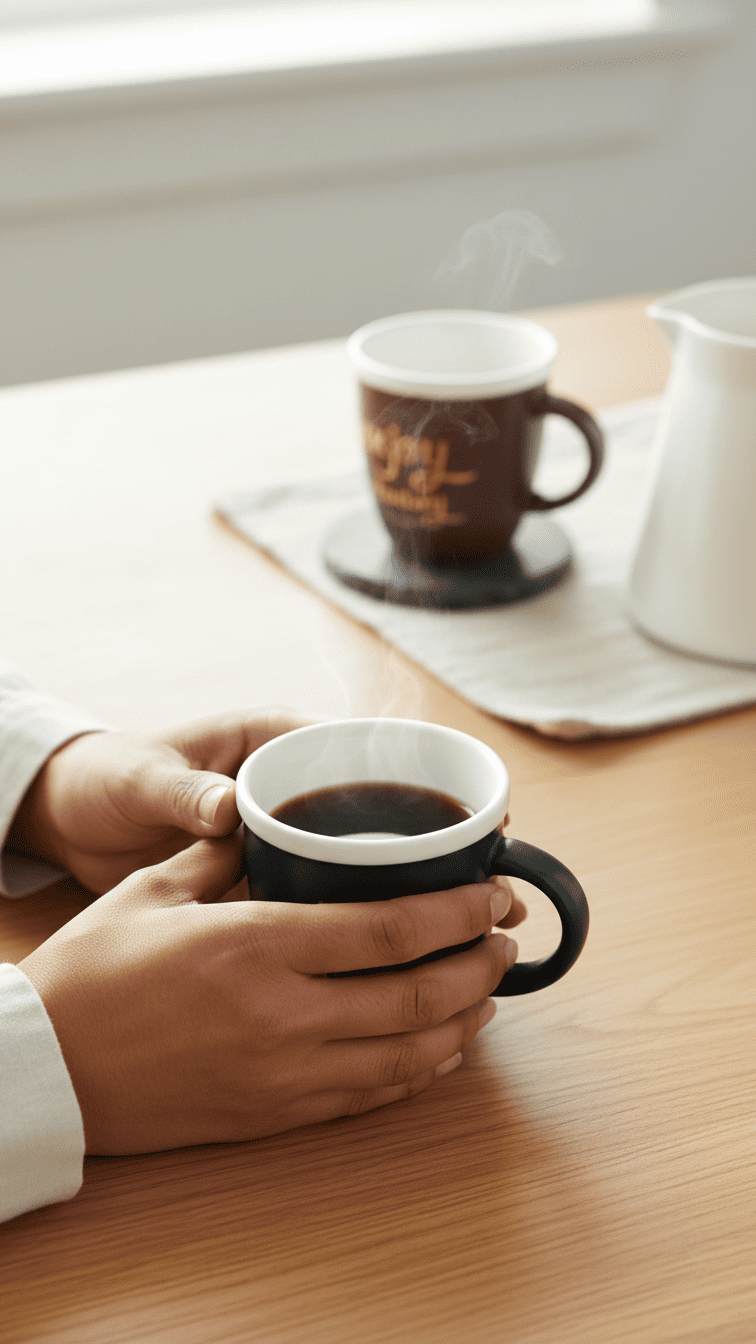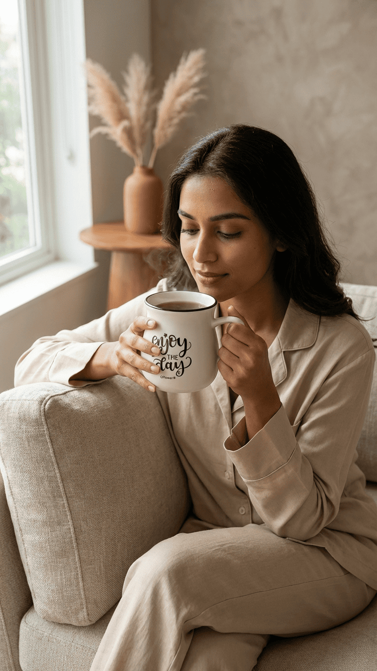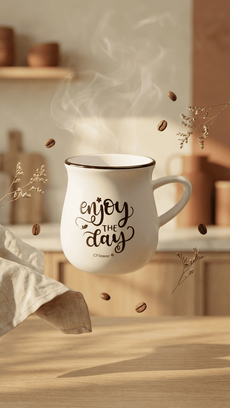 This charming ceramic mug features an inspiring ‘Enjoy The Day’ message in elegant script lettering, making it perfect for starting your morning on a positive note. The cream-white body is accented with a sleek black rim and comes with a comfortable handle for easy holding. Ideal for coffee, tea, or any hot beverage, this mug combines functionality with motivational messaging.