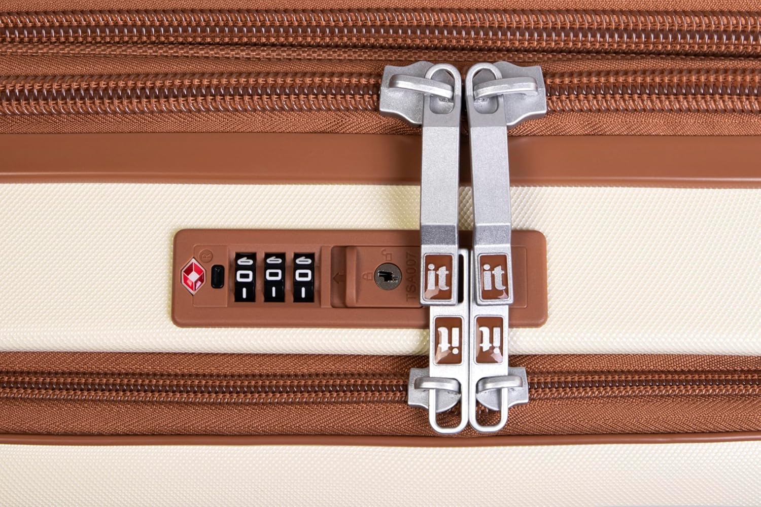 Wipe the exterior with a soft, damp cloth to remove dust and stains. For the brown leather accents, use a leather conditioner occasionally. Ensure the spinner wheels are clean and free from debris for smooth rolling. Store in a cool, dry place and avoid prolonged exposure to direct sunlight to prevent color fading.
