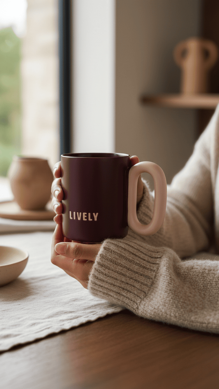 Add a touch of contemporary style to your daily routine with this elegant Lively ceramic mug. Featuring a striking burgundy body paired with a soft blush pink handle, this mug combines functionality with modern aesthetic appeal. Ideal for coffee, tea, or any hot beverage, it makes a perfect addition to your kitchen collection.