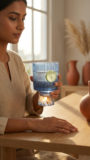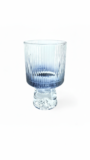 This elegant ribbed crystal pedestal glass features a distinctive vertical flute pattern that adds sophistication to any table setting. The sturdy pedestal base provides stability while the clear glass with a subtle blue tint at the bottom creates a refined aesthetic. Ideal for serving water, juice, cocktails, or other beverages in style.