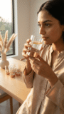 Hand wash recommended for longevity. Avoid abrasive sponges or harsh chemicals. Dry immediately after washing to prevent water spots on the glass and metallic base. Do not place in dishwasher to preserve the rose gold finish.
